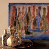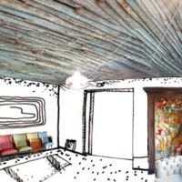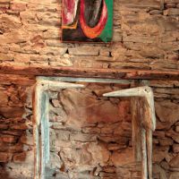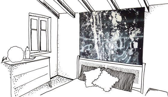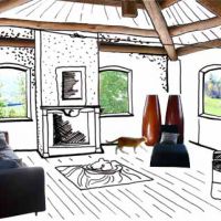 Double bedroom with fireplace, living room, private bathroom with shower.